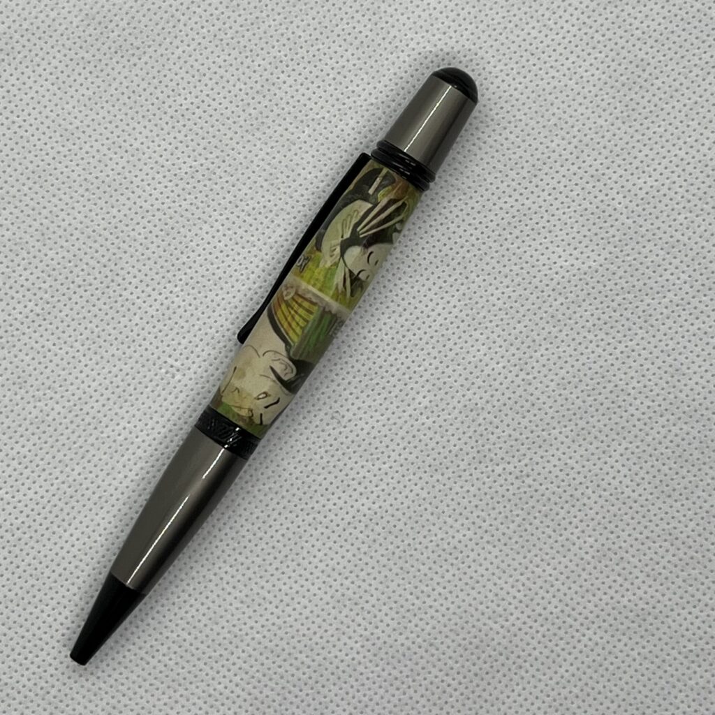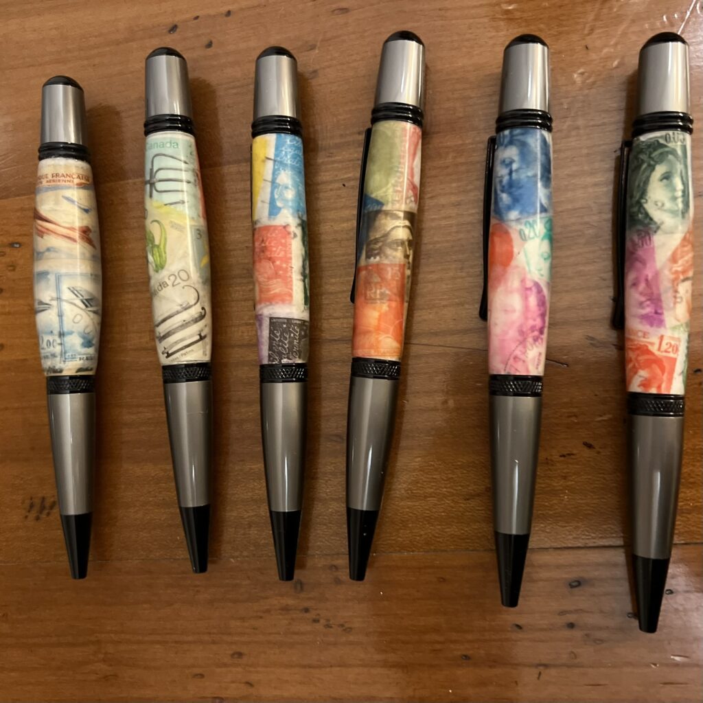 Vous pouvez choisir un carrelet de bois, un carrelet de résine époxy-bois, de la résine époxy-photo, timbre ou autre et un carrelet de corne. Vous pouvez me confier un morceau de bois qui vous appartient afin que ce stylo vous soit encore plus personnel.